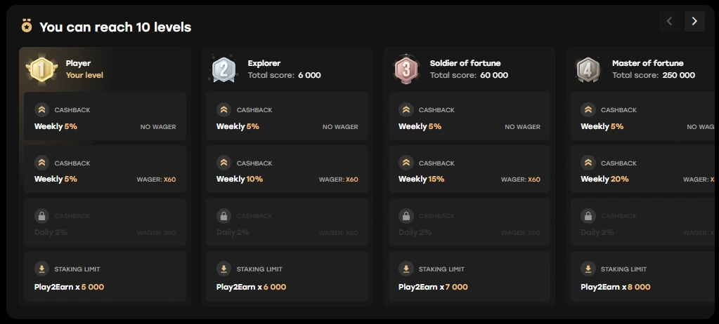 | Silver Level | Enhanced bonuses, improved withdrawal conditions, and access to special tournaments. |